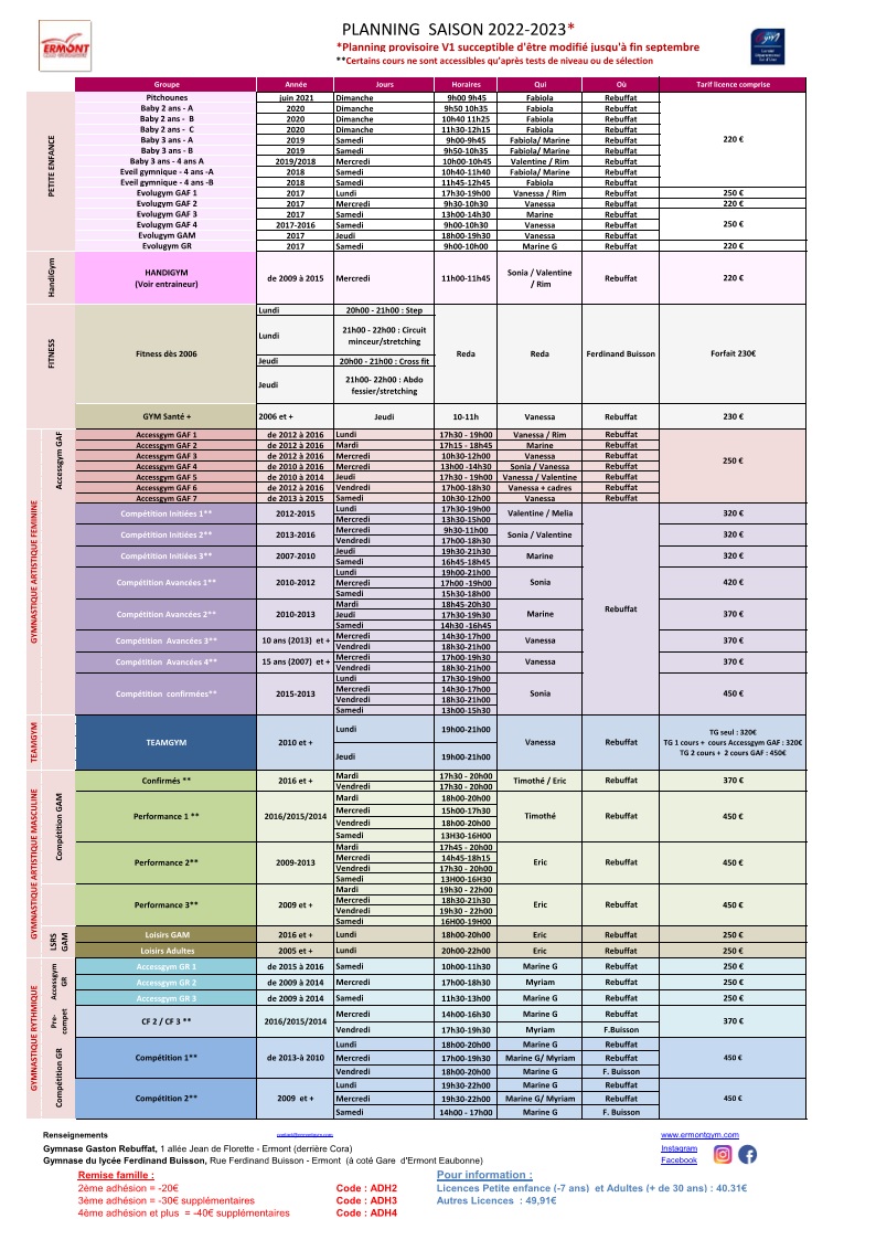 Pour plus de renseignements contactez nous par mail contact@ermontgym.com ou corinne.ermontgym@gmail.com